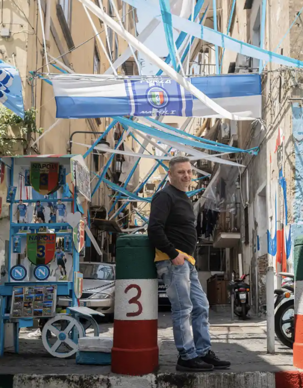 Le persiane della sua finestra del bagno corrispondono alla testa del campione e, per rispetto, l’ha tenuta chiusa fino alla notte dello scorso 4 maggio 2023, in cui il Napoli si è laureato campione d’Italia per la terza volta nella sua storia.