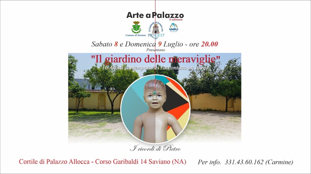 Sabato 08 luglio e domenica 09 luglio 2023 presso il cortile e il giardino di Palazzo Allocca in corso Garibaldi 14 a Saviano (NA), il Comune di Saviano e la Pro Loco ‘Il Campanile’ di Saviano presentano l’evento artistico ‘Il Giardino delle Meraviglie’, sedici Artisti contemporanei raccontano un luogo.