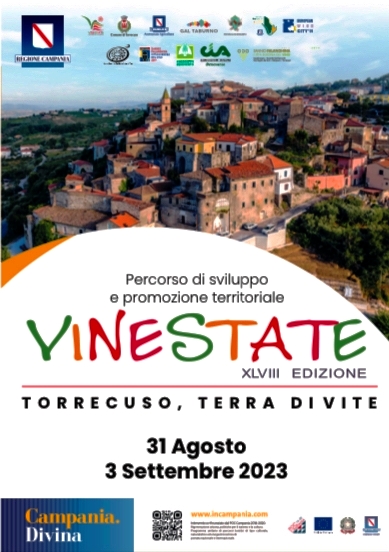 Giovedì 31 agosto si alza il sipario sulla 48esima edizione di Vinestate: alle ore 18:00 apertura delle Cantine in piazza Mellusi e Caracciolo ed inaugurazione della mostra collettiva di pittura dei giovani talenti Artkeys Prize presso l’ex Cappella di palazzo Caracciolo-Cito. Alle ore 18:30 presso Palazzo Caracciolo-Cito convegno “Torrecuso , terra di Vite. Proposte e soluzioni innovative per il Museo del Vino Identitario”.