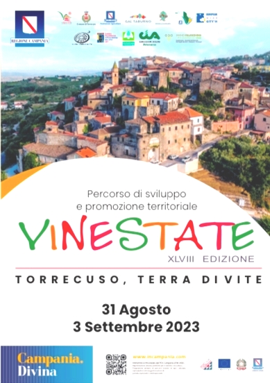 C’è attesa a Torrecuso, grazioso Borgo in provincia di Benevento ai piedi del Taburno, per la 48esima edizione di ‘Vinestate’ la rassegna dedicata ai vini del Taburno in programma da giovedì 31 agosto a domenica 3 settembre. Sarà un percorso di sviluppo e promozione territoriale organizzato dal Comitato ‘Vinestate’ con il Comune di Torrecuso, ed il patrocinio della Regione Campania e dell’Assessorato all’Agricoltura Regionale, della Provincia di Benevento, del Gal Taburno, dell’Ente Parco Taburno-Camposauro e in sinergia con la Cia e la Coldiretti e diverse associazioni territoriali. Vinestate, è un intervento co-finanziato dal ‘POC Campania 2014-2020. Rigenerazione urbana, Politiche per il Turismo e la Cultura. Programma Unitario di Percorsi Turistici di tipo culturale, naturalistico ed enogastronomico di portata nazionale ed internazionale’ e che rientra nella brandy identity “Campania.Divina”.