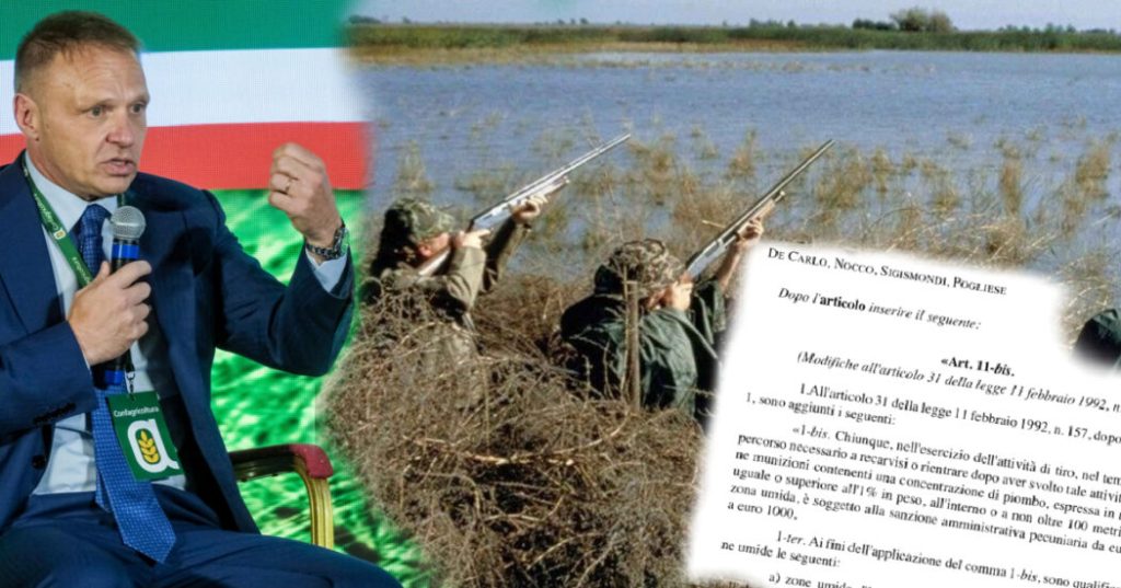 (Alberto Marzocchi – ilfattoquotidiano.it) – Va bene difendere Dio e la famiglia, ma guai a dimenticare cacciatori e armaioli. E infatti Fratelli d’Italia (e Lega) non lo fanno. Non poteva che essere così, visto che il ministro-cognato Francesco Lollobrigida fa parte della prima categoria e visto che la lobby delle doppiette assicura ai due partiti decine di migliaia di voti a ogni elezione. E così, con sorprendente zelo, governo e maggioranza si sono messi pancia a terra per favorire le doppiette: senatori, uffici legali, vertici di partito (e anche europarlamentari, per non farsi mancare nulla) stanno riscrivendo le leggi per aggirare ciò che ha stabilito l’Unione europea proprio prima dell’apertura della stagione venatoria. Come? Infilando una serie di emendamenti in un decreto legge che non ha nulla a che vedere con la caccia allo scopo di: 1) scavalcare il divieto Ue che impone di non utilizzare le cartucce al piombo; 2) togliere potere ai giudici amministrativi in caso di ricorsi sui piani venatori; 3) depotenziare l’Ispra (in favore, guarda caso, degli interessi dei cacciatori).