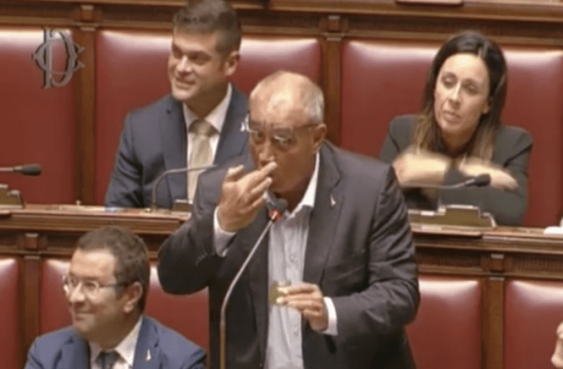 Pensavo che col taglio dei parlamentari fossero finite le pagliacciate del taglio della mortadella, del cappio o della esibizione dell’anello alla fidanzata mentre si lavora in parlamento.