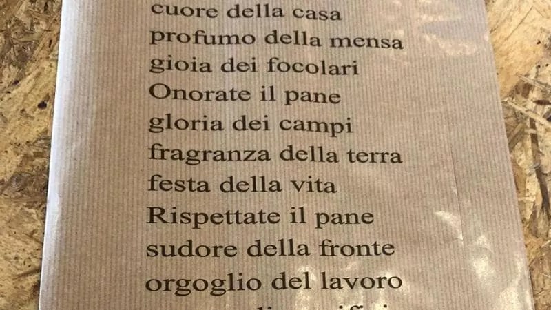 Il panettiere è un lavoro duro, bello e duro, uno di quei lavori che bastano a dare un senso. Bisogna sapere di farine e di temperature, di lieviti e di cotture, non si può biasimare un panettiere solo perché non riconosce a naso l’orribile retorica di quei versetti tronfi e mediocri (questo è il fascismo: tronfio e mediocre) sul pane “ricchezza della patria / il più santo premio alla fatica umana”.