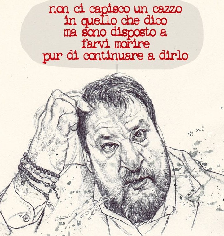 Nella vicenda si è poi inserita Amnesty International, che per bocca del portavoce Riccardo Noury ha motivato una posizione analoga a quella di Zerocalcare, autore che da sempre si batte meritoriamente per la causa palestinese. Amnesty e Zerocalcare sono stati attaccati dal vicedirettore del Foglio (che non sapevo neanche esistesse), Andrea Marcucci (che non sapevo ancora esistesse) e Salvini. Mancano solo Pigi Battista, Sechi, Donzelli, Magliaro, la Gegia, lo Scrondo del Missouri e siamo a posto. In questo caravanserraglio di geni contemporanei, Salvini non ha mancato di svettare, accusando appunto di “razzismo” Amnesty International. E in effetti, lui, di razzismo (almeno quello) un po’ se ne intende. Le sue posizioni su rom, arabi e (più in generale) “extracomunitari” sono note. Ancora risuonano alcune sue parole sature di tolleranza come queste: “Con gli immigrati che arrivano in Italia è in corso una sostituzione etnica vera e propria. Bisogna scaricarli sulle spiagge, con una bella pacca sulla spalla, un sacchetto di noccioline e un gelato”. Quanta saggezza, quanta lucidità. Da qui a breve, come minimo, Salvini accuserà il Papa di bellicismo efferato, Scorsese di regia debole e Gasparri di intelligenza straripante. Che statista di primaria grandezza!