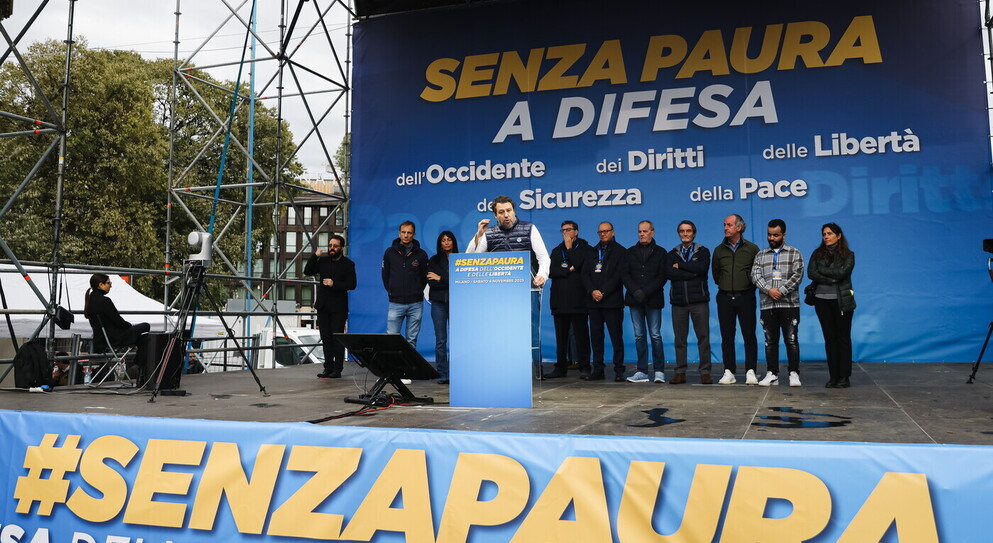 “Due popoli e due stati” e contro gli odiatori. A Milano il leader della Lega cita Beccaria, difende Israele e lancia la nuova Lega dei sindaci. “Il terrorismo è la piaga del secolo”