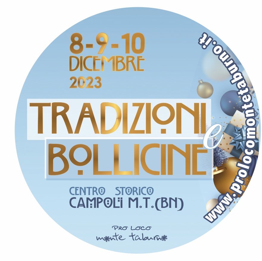 Dopo il grande successo della 28° Sagra del Fagiolo ecco che la Pro Loco ‘Monte Taburno’ ritorna per il weekend dell’Immacolata con ‘Tradizioni e Bollicine’ in programma nel magnifico scenario del centro storico di Campoli del Monte Taburno! Il programma completo sarà ufficializzato nei prossimi giorni ma intanto la Pro loco ‘Monte Taburno’ terrà una riunione oggi, (venerdì 17 novembre) alle ore 19:00, aperta a tutti gli espositori interessati a partecipare a queste tre magiche serate pre-natalizie per godere l’arrivo del Natale tra buon cibo, musica e bollicine per brindare alle feste e al nuovo anno. Ci saranno stand enogastronomici, percorsi di degustazione a base di bollicine, dolci della tradizione natalizia e tanto altro.. il tutto mentre si passeggia nella magica cornice del centro storico che si trasformerà in un villaggio natalizio. Sarà un percorso da vivere fino in fondo, accompagnati da spettacoli di musica che animeranno le vie del borgo, all’interno di un evento che coniuga l’amore per il territorio, per i prodotti tipici e le tradizioni natalizie. Tutto ciò con lo scopo di valorizzare le eccellenze della terra del Taburno, sia enologiche che gastronomiche. Pertanto nei giorni 8-9-10 dicembre Campoli del Monte Taburno si trasformerà in un vero e proprio mercatino enogastronomico natalizio.