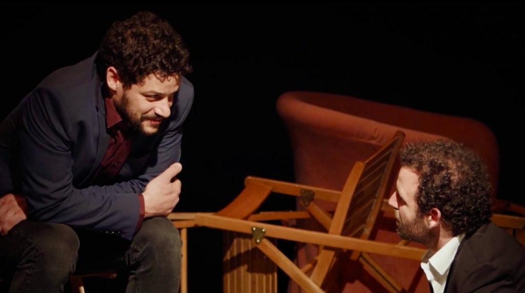 “Uccidiamo il Re” è uno spettacolo di prosa a due personaggi perennemente in scena per un’ora e mezza. Sul palco una quadratura nera, sette sedie e una poltrona. Lo stile dello spettacolo ricorda i vecchi film della Commedia all’Italiana, in particolare lo stile di Monicelli (Parenti Serpenti-Un borghese piccolo piccolo), dove la comicità si contamina con la tragedia e con la bassezza dell’animo umano. Il testo prende spunto da una storia vera – romanzata e spinta all’eccesso – ed è un grido di protesta contro i nostri padri che continuano a voler restare ‘classe dirigente’ e rendono precari i nostri sogni e il nostro futuro. La messa in scena è esplosiva, i ritmi serrati sono intervallati da flash back della vita passata dei due protagonisti. Un viaggio doloroso e meraviglioso.