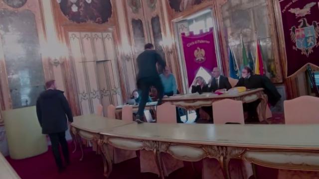 (di Michele Serra – repubblica.it) – Chissà se aveva almeno le scarpe pulite, l’energumeno che è zompato sul tavolo della presidenza del Consiglio comunale di Palermo urlando e strappando il microfono al presidente dell’assemblea. Che sia un fascista (è il capogruppo di Fratelli d’Italia) non è certo un dettaglio, ma non scioglie del tutto l’enigma della totale perdita di rispetto e di dignità che un gesto del genere comporta. Rispetto per se stesso, prima di tutto, perché chiunque, vedendo quel video, non può che farsi la stessa domanda: “Ma chi è questo zotico? Cosa gli è saltato in mente?” E la dignità calpestata del suo ruolo: è capogruppo! Se un giocatore con la fascia di capitano aggredisce l’arbitro, la sua colpa, agli occhi di tutti, non solo della giustizia sportiva, anche del tifoso ordinario, è doppia.