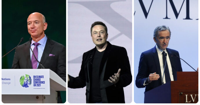 (Mauro Del Corno – ilfattoquotidiano.it) – Vince in volata Elon Musk. È lui il più ricco del 2023 superando il francese Bernard Arnault, patron del gruppo del lusso Lvhm. I loro patrimoni sono aumentati sensibilmente nel corso dell’anno. Hanno lavorato di più? No. Semplicemente possiedono una bella fetta delle azioni dei gruppi che comandano e con la corsa delle azioni dell’anno che si conclude la ricchezza su cui siedono è lievitata. Il patrimonio del fondatore di Tesla (titolo in rialzo del 140%) è aumentato di 95 miliardi di dollari, oltre tre volte il valore della legge di bilancio italiana, per intenderci, raggiungendo i 232 miliardi. Il francese deve accontentarsi di un tesoretto da 179 miliardi, sostanzialmente invariato rispetto ad un anno fa. Arnault viene così raggiunto da Jeff Bezos di Amazon che recupera una cinquantina di miliardi dopo i cali del 2022. Quarta posizione per Bill Gates di Microsoft che sale a 140 miliardi davanti al “collega” Steve Ballmer, ex di Microsoft. Anche per Mark Zuckerberg il 2023 è stato positivo: si è arricchito di 80 miliardi di dollari e si piazza al sesto posto.