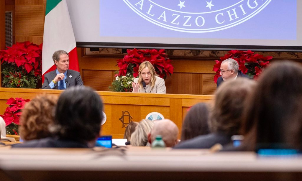 (di Stefano Baudino – lindipendente.online) – Tra domande di gossip politico, spari alle feste di capodanno e richieste di andare in bagno, sulla maggior parte dei media il resoconto della conferenza stampa di fine anno tenuta ieri dalla premier Giorgia Meloni – rimandata da fine dicembre a inizio gennaio per motivi di salute – somiglia più a un appuntamento di colore piuttosto che a una questione politica. Le domande presentate in conferenza stampa, cui hanno avuto accesso solo giornali facenti parte del sistema mainstream, non sono state certo particolarmente degne di nota. Ciononostante, trattando delle misure economiche su cui il governo intende puntare, Giorgia Meloni ha nuovamente svelato la trasformazione di Fratelli d’Italia da forza politica sedicente sovranista a partito che, in nome degli equilibri e dei vincoli di bilancio stabiliti a Bruxelles, prepara un nuovo piano di vendita dei gioielli di Stato. La premier ha infatti ribadito che si va verso la privatizzazione di Poste Italiane e Ferrovie, nella prospettiva di ridurre la presenza dello Stato «dove non necessario».