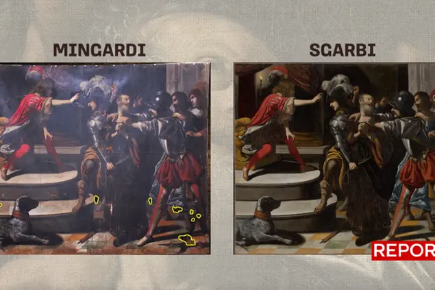 La tela è arrotolata, piena di buchi, in pessime condizioni, ma specialmente appare ritagliata, come se fosse stata asportata dalla cornice originale con un taglierino. Mingardi ha le prove, mostra le foto e l’elenco delle opere riconsegnate a Sgarbi nel 2018. Cosa spinge Mingardi a parlare con Report e col Fatto Quotidiano? Certamente i pessimi rapporti economici col sottosegretario: sono in causa per i mancati pagamenti dei suoi restauri. Ma anche un fatto, che lo preoccupa molto. Lo stesso quadro che lui ha restaurato viene esposto pubblicamente, in una mostra intitolata “I pittori della Luce”, che inaugura l’8 dicembre del 2021 a Lucca. Curatore: Vittorio Sgarbi. Proprietà dell’opera: fondazione Cavallini-Sgarbi.