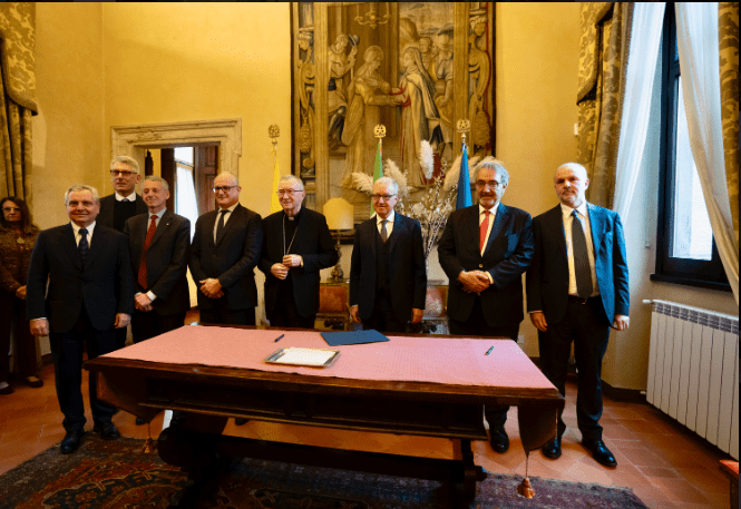 Firmata l’intesa con la Santa Sede, rappresentata dal segretario di Stato, card. Pietro Parolin, con il sottosegretario alla Presidenza del Consiglio, Alfredo Mantovano.
