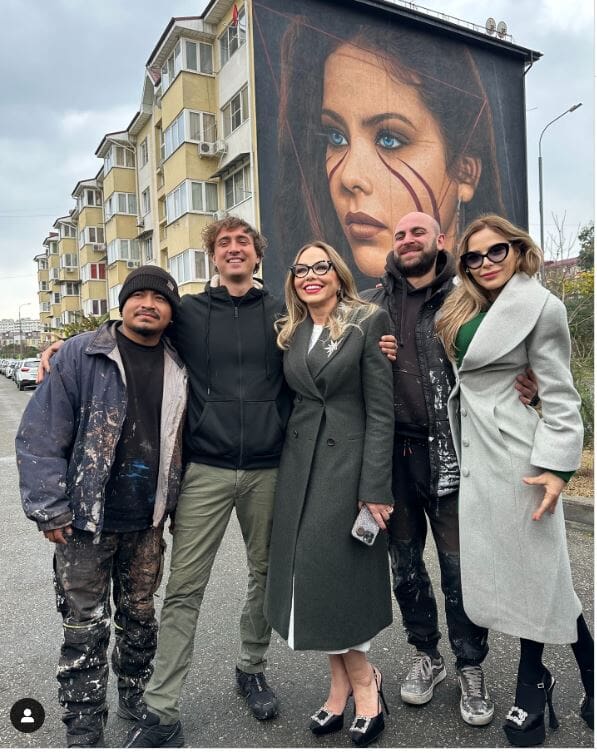 Jorit è da qualche giorno a Sochi, dove ha accolto anche la protagonista del suo murale su un palazzo della città, Ornella Muti, arrivata in Russia con la figlia Naike Rivelli per un tour russo che ha fatto tappa anche alla Moscow fashion week.