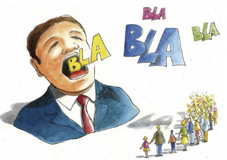 A questo si collega la ricerca dell’altrettanto leggendario e intellettualmente inafferrabile ‘Blocco Riformista’. Qui la questione, tuttavia, non è geometrica, ma linguistica, ossia si trova nella descrizione dell’essere. Il tutto infatti, si connette alla tecnica del ‘Risparmio Semantico’, molto in voga, che si basa sulla regola della sintesi della semplificazione nel nome del ‘dillo in un tweet’. Una delle radici di tale forma di pensiero elementare si può trovare nel celeberrimo ‘ma anche’, che serve a confutare il principio di contraddizione risolvendolo definitivamente. Per dirla in breve, se il principio di contraddizione sostiene che ‘piove O non piove’, il principio del ‘ma anche’ risolve questa contraddizione e la annulla perché si passa al ‘piove E non piove’ che è il principio di negazione della contraddizione.