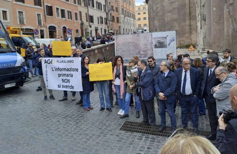 L’evento era una protesta dei giornalisti in sciopero dell’AGI, la seconda agenzia di stampa italiana, dopo le insistenti notizie sull’acquisizione da parte di un ricco deputato della coalizione di governo di Giorgia Meloni.