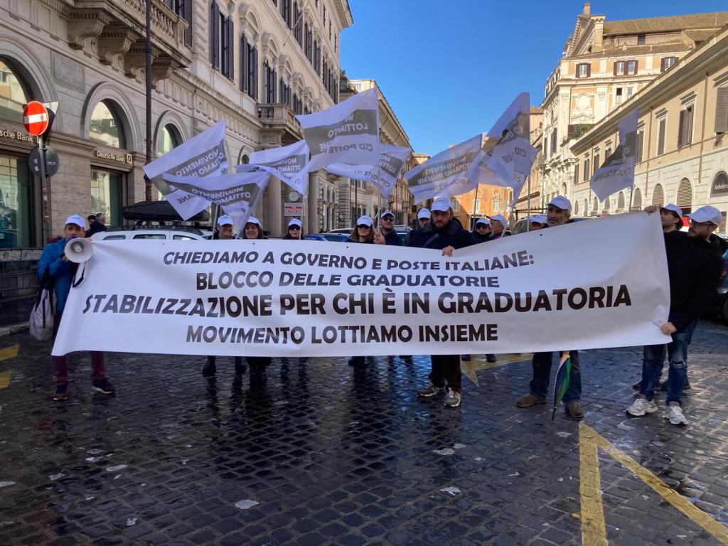 Lottiamo Insieme è un movimento popolare di lavoratrici e lavoratori precari di Poste Italiane, nato a Roma nella primavera del 2023, per denunciare l’abuso del ricorso ai contratti a termine posti in essere dall’azienda – 90 mila negli ultimi sette anni! – nonché sollecitare il Governo e le Istituzioni nazionali ad adottare misure urgenti volte a favorire l’occupazione stabile e di qualità. Il Movimento, che si è reso protagonista di numerose iniziative in piazza per informare e sensibilizzare la cittadinanza, conta ormai centinaia di iscritti in tutta Italia.
