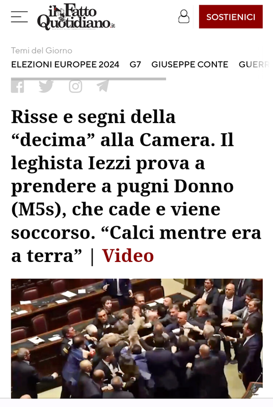 “Siamo arrivati alle violenze dai banchi della maggioranza Meloni. Hanno aggredito il nostro Leonardo Donno perché ha portato il tricolore al Ministro Calderoli, perché diciamo no alla secessione dell’Italia firmata Meloni, Salvini e Tajani. È uscito in barella dalla Camera dei deputati. Giù le mani da noi, giù le mani dal nostro tricolore. Non passerete. Vergogna”. Lo scrive sui social pubblicando il video della rissa il leader dei 5 stelle, Giuseppe Conte.