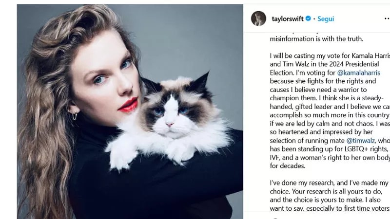 L’appoggio di Taylor Swift a Kamala Harris è las riprova del detto” simili con simili” ovvero le due nullità ,la “swiffer” e la kamala, si intendono alla perfezione…