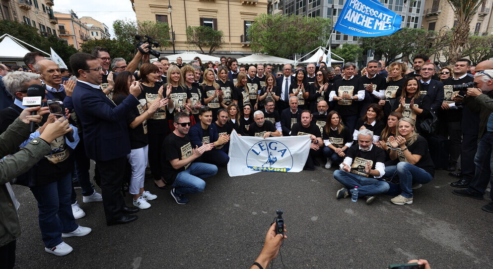 (Carmelo Caruso – ilfoglio.it) – E’ l’unico imputato che desidera la galera e il cesso alla turca. Non fatevi prendere in giro. Salvini teme l’assoluzione più della condanna, la libertà da leader decaduto più della cella fredda e fetente. Cerca sei anni di carcere, qui, a Palermo, a piazza Politeama, la città delle stragi, la città che ha ignobilmente ridotto in un bivaccone, in un manipolo di trolley e magliette da carnevale. Il reato che gli andrebbe contestato non è il sequestro della nave Open Arms, prescritto dalla storia, ma vilipendio di memoria civile, delegittimazione di toghe al fronte.
