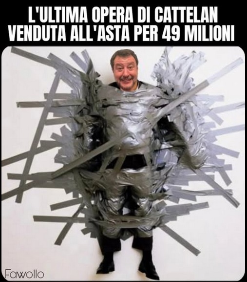 Come mi capita di dire in altri campi, io non discuto l’operazione, la trovata, la libertà d’impresa, la notorietà derivata e perfino la vendita a quel prezzo. Discuto solo che si possa definire opera d’arte, e che possa essere affiancata o semplicemente denominata allo stesso modo della pietà di Michelangelo o all’ultima cena di Leonardo. No, è operazione meta-commerciale; surreale non è l’arte ma il marketing.
