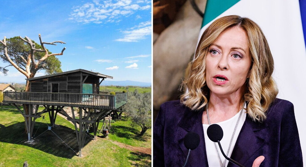 La presidente del Consiglio ha dormito con la piccola Ginevra in un loft costruito su un pino marittimo secolare nell’Alta Tuscia. Un modo per staccare, lontana dalle beghe del governo: “Quasi quasi non scendo più”