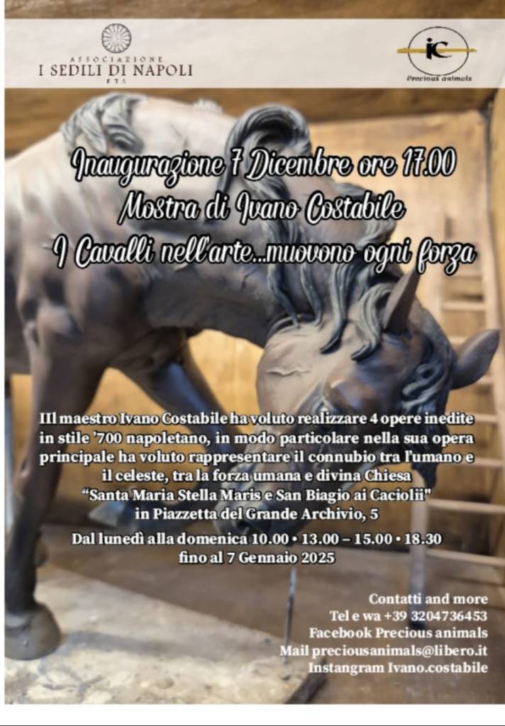 Si inaugura sabato 7 dicembre 2024 alle ore 17:00 nella chiesa neogotica “Santa Maria Stella Maris”, affidata alle cure dell’Associazione “I Sedili di Napoli ETS” che ne promuove il restauro, in Piazzetta del Grande Archivio, una straordinaria mostra di Arte Presepiale del maestro Ivano Costabile.