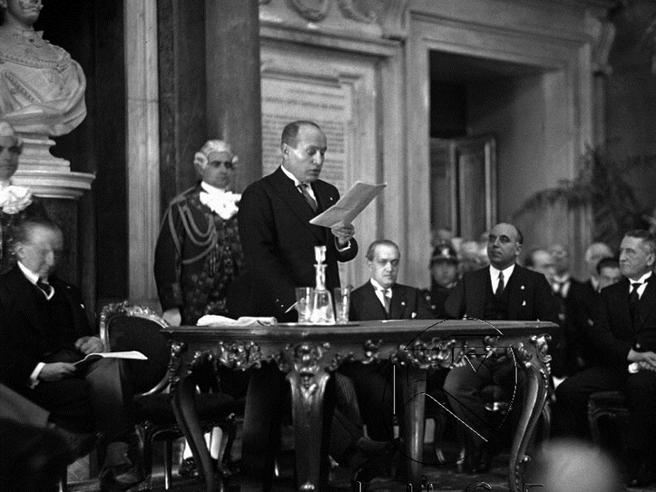(Michele Serra – repubblica.it) – Nelle foto che, in questi giorni, accompagnano le rievocazioni del discorso di Mussolini che inaugurò la dittatura fascista, mi colpisce ciò che mi ha sempre colpito più di ogni altra cosa, a proposito del fascismo e del suo fondatore: la postura imperiosa, i pugni sui fianchi, il mascellone proteso, la faccia atteggiata a maschera volitiva, quello che oggi si chiama “linguaggio del corpo”. Una figura grottesca, un disegno di Grosz, una caricatura della virilità e della forza: mi sono sempre chiesto come sia stato possibile che un personaggio siffatto — fisicamente: un caratterista — abbia sedotto un numero così grande di italiani, diventando artefice, a furor di popolo, di una delle più grandi tragedie del Novecento.
