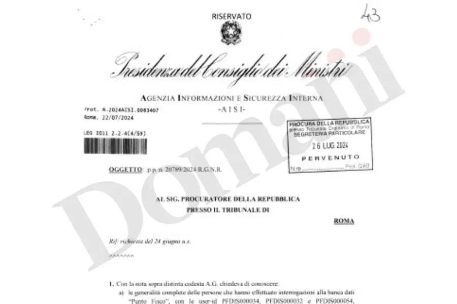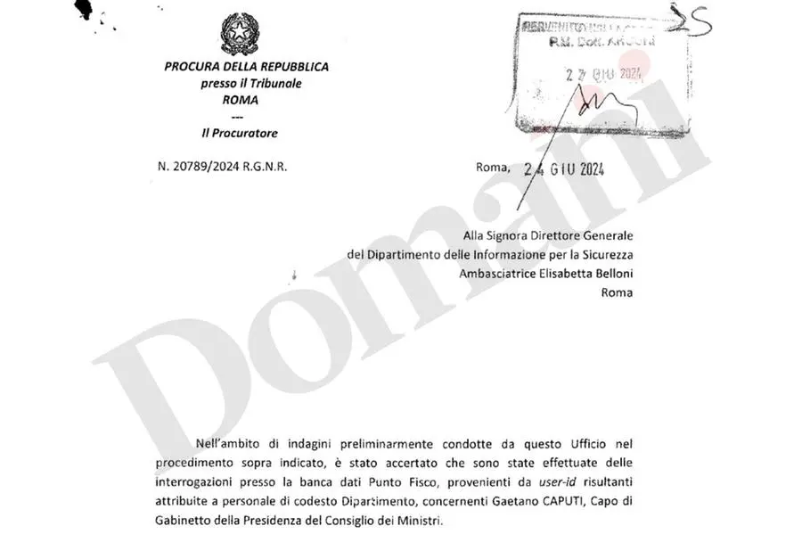 Lo Voi scrive a Belloni: «Ove non sussistano ragioni ostative,(chiede, ndr) di voler comunicare le generalità complete delle persone che hanno effettuato gli accessi, unitamente alle ragioni che vi hanno dato causa o che, comunque, li hanno legittimati».