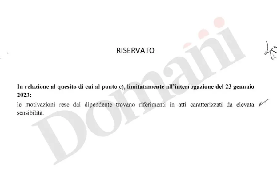 In un terzo caso, invece, gli 007 non possono neppure fornire quantomeno una spiegazione apparente ai magistrati romani, perché l’Aisi si affida alla formula criptica: «Le motivazioni rese dal dipendente trovano riferimenti in atti caratterizzati da elevata sensibilità». Adombrando una questione di sicurezza nazionale nell’indagine sull’alto dirigente che lavora fianco a fianco della presidente del Consiglio.