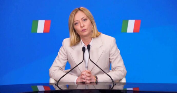 (Di Giacomo Salvini – ilfattoquotidiano.it) – L’immagine è la stessa. Lo sfondo pure. Ormai studiato alla perfezione dalla macchina comunicativa di Palazzo Chigi. La presidente del Consiglio Giorgia Meloni si berlusconizza. Collegata con l’evento La Ripartenza di Nicola Porro a Milano, la premier attacca il procuratore di Roma Francesco Lo Voi e i giudici che “fanno un danno alla Nazione”. Si riferisce all’avviso di garanzia ricevuto martedì – insieme ai ministri Carlo Nordio, Matteo Piantedosi e al sottosegretario Alfredo Mantovano – per la gestione del caso del torturatore libico Almasri.