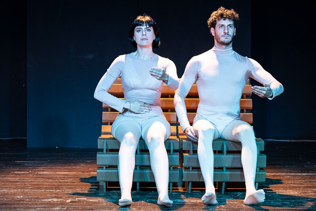 Soffocati dai sensi di colpa, Uomo e Donna si flagellano fino allo sfinimento, raggiungendo il loro punto limite. È proprio da qui che provano a rialzarsi: liberandosi dei vestiti che puzzano di colpa, cercano la libertà. “È facile, basta iniziare. Dimentica una cosa.” Qual è la libertà che nasce dalla negazione?