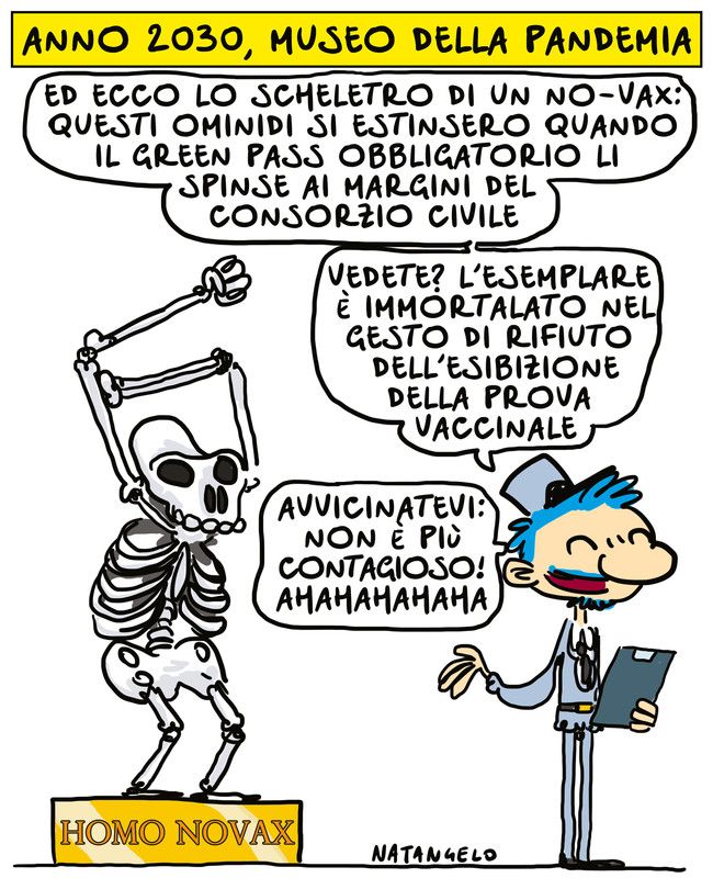 Come mai Travaglio non dice mai una cosa ovvia che tutti hanno capito, cioè che la pandemia era finta, poco più di un raffreddore, ed è stato un complotto mondiale per toglierci i nostri sacri diritti e segregarci, umiliarci, isolarci, censurarci, stigmatizzarci e tutte le cose che finiscono in arci?