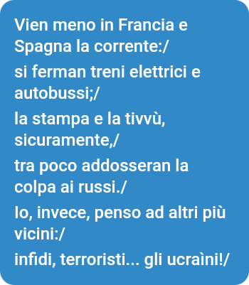 Nessuno ha “addossato” la colpa ai russi. Peccato. Mi sarei divertito un mondo a leggere i commenti dei putiniani di casa nostra. Tipo: “visto? Putin è arrivato fino in Portogallo”. E giù risate, e un fiume di “mi piace” per tutti.