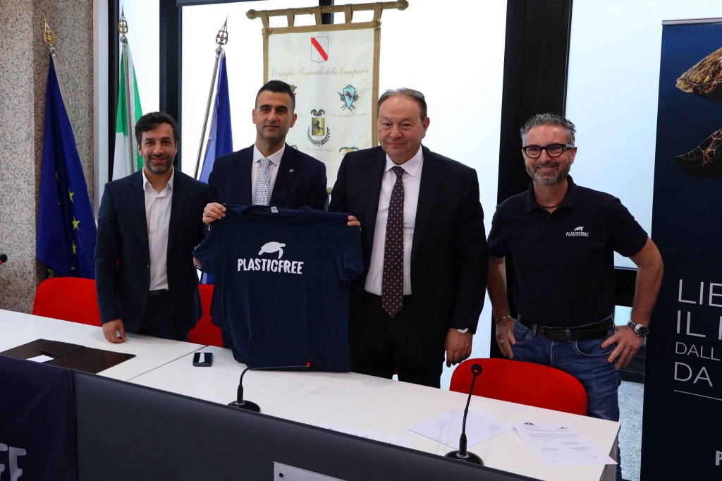 Questa mattina, in Consiglio regionale della Campania, il Presidente del Consiglio regionale, Gennaro Oliviero, il Presidente della IV Commissione Speciale Innovazione e sostenibilità per la competitività ed il rilancio delle imprese, Gennaro Saiello, il Presidente nazionale e fondatore di Plastic Free Onlus, Luca De Gaetano e il referente regionale per la Campania, Francesco Gallina, hanno firmato un protocollo d’intesa tra il Consiglio regionale della Campania e Plastic Free Onlus.