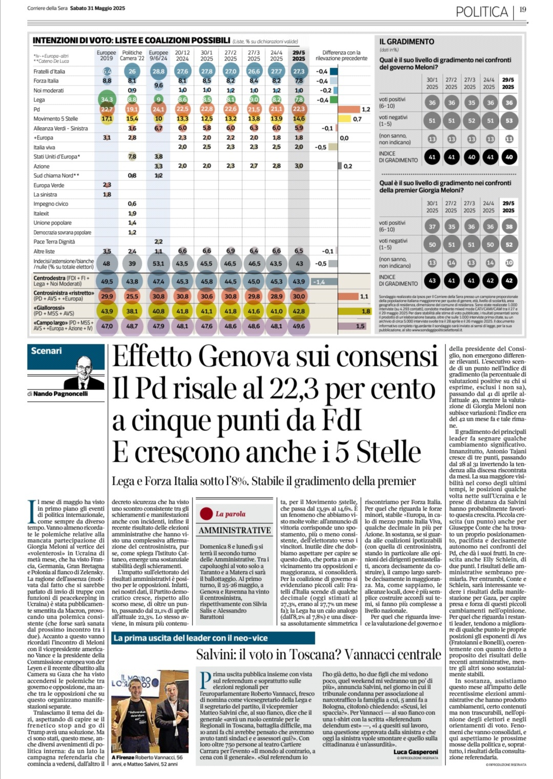 Quanto al corteo romano per la pace del 7 giugno, un pro e un contro. Bene che faccia da traino ai referendum dell’8 e 9 giugno. Occhio ai ProPal e alle loro incursioni, non sempre pacifiche, mirate a prendersi la scena (con grande soddisfazione della destra).