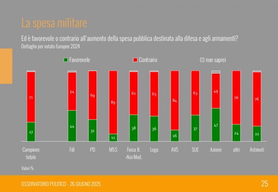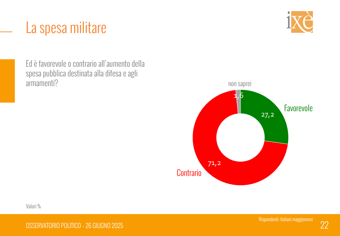 Come era prevedibile, gli italiani sono contrari all’aumento della spesa militare. Una scelta impopolare che affosserà questo governo. Il guaio è che affosserà anche noi. Al Mov. lasceranno solo macerie. 😕