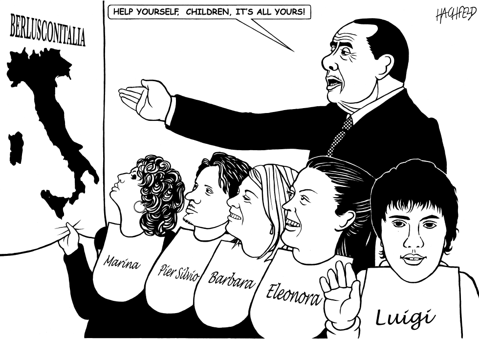 Ieri Pier Silvio ha cancellato il rampollo balbettante al guinzaglio dei tutors Confalonieri, Dell’Utri e Galliani e ha rimesso la chiesa (Berlusconi) al centro del villaggio (Italia) sistemando la sorellina al suo posto, a giocare tra le bambole.