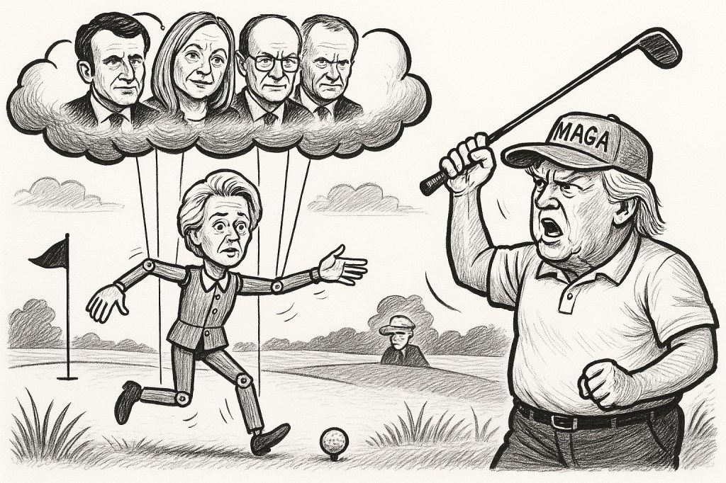 E il bello è la sorpresa dei nostri governanti! “Ma come? Non sa trattare? Non è abbastanza dura?”. Ma perbacco! Avete voluto una Commissione debole, remissiva, che chieda il permesso per starnutire. Avete celebrato ogni volta che ne avete umiliato l’autorità. Avete voluto che fosse il riflesso dei vostri piccoli calcoli, non di una grande strategia europea. E ora pretendete che, magicamente, si trasformi in un’eroina da film d’azione davanti al tycoon della Casa Bianca? È come stupirsi che un cane a cui avete insegnato solo a sedersi non sappia giocare a scacchi. Il vero paradosso non è che la Presidente non sappia trattare con Trump. Il vero paradosso è che i governanti d’Europa si stupiscano della creatura che hanno così accuratamente, e tragicamente, costruito. Il fantoccio danza solo come gli permettono i fili. E i fili, signori miei, li tenete saldamente voi.