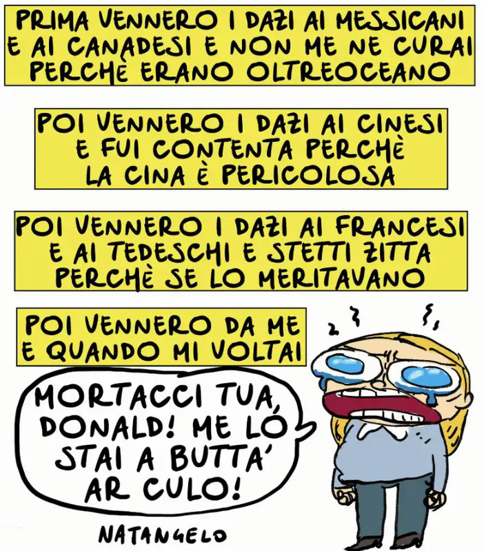 Un primo conteggio dei danni per i produttori di vini italiani arriva dall’Osservatorio Uiv: le perdite stimate sono di circa 317 milioni di euro per i prossimi 12 mesi. Ma ai partner Usa andrà anche peggio, con un rosso per le mancate vendite che potrebbe arrivare fino a 1,7 miliardi di dollari. Anche per i viticultori italiani tuttavia si potrebbe arrivare a 460 milioni di dollari di mancato export, se il dollaro dovesse mantenere l’attuale livello di svalutazione. Il vino, ricorda il presidente dell’Unione italiana vini Lamberto Frescobaldi, è «il settore più esposto tra le top 10 categorie italiane di prodotti destinati agli Stati Uniti, con un’incidenza al 24% sul totale export globale e un controvalore di circa due miliardi di euro l’anno».