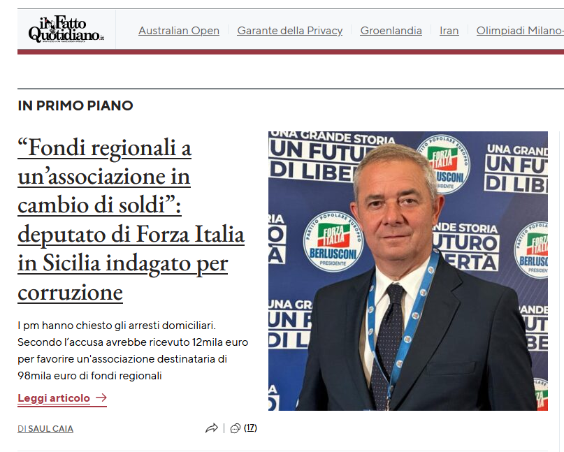 La vera la notizia pero’ non e’ il milionesimo indagato per corruzione in quell’associazione a delinquere che risponde al nome di Forza Italia (percentuali delinquenziali che non si trovano manco a Rebibbia)… la vera notizia e’ che mentre nel tardo pomeriggio quest’indagine per corruzione era in primo piano sulla home del Fatto… beh.. non se ne trovava alcuna traccia sui siti degli altri quotidiani: il nulla…