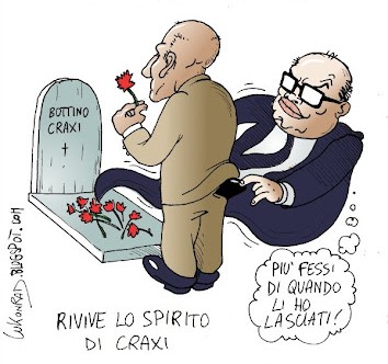 La condanna definitiva del sig. Craxi, non è un’opinione vagamente diffusa, ma una sentenza emanata in nome (e per conto) del popolo italiano. Tutti i presidenti del consiglio hanno diritto per legge ai funerali di stato, per (un’altra cosa è il lutto nazionale) e D’Alema si limitò solo a proporne l’applicazione anche per il sig. C. Bisogna comunque riconoscere all’autore del panegirico una fervida fantasia