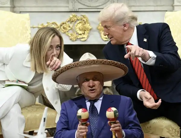 Già, la Evita della Garbatella, Giorgia Meloni, che agita il tricolore in Italia, ma non passa giorno senza usare la bandiera bianca per lucidare gli stivali con gli speroni del Bullo della Casa Bianca.