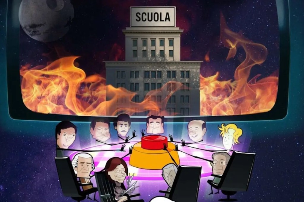 Evidentemente la sincera soddisfazione manifestata dallo studente dipende dalla sua (purtroppo corretta) convinzione di essere stato bravo a risolvere la grana dell’autogestione con la soluzione perfetta: che esenta dallo sforzo di pensare e di organizzare, ed è sicura e qualificata, sterilizzata e certificata, praticamente incontestabile. Che la fattispecie della autogestione eterogestita, con influencer a pagamento, costituisca una vetta ossimorica ineguagliata e probabilmente ineguagliabile, non è un sospetto che sfiori né lui né i suoi colleghi rappresentanti – e per la verità nemmeno gli altri componenti anziani del consiglio di istituto, che non fanno una piega.