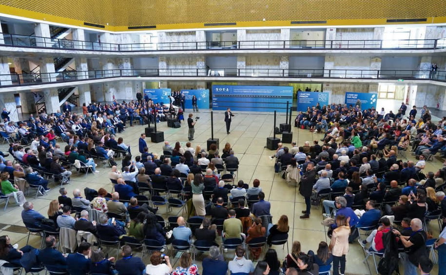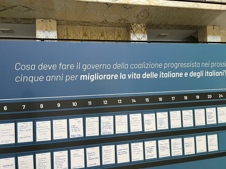 Al centro di un’agorà di sedie disposte in cerchio, Conte dà la carica agli attivisti con queste parole: «Ci accingiamo a costruire un progetto di governo scritto insieme ai cittadini dai cittadini. Non esiste in un altro Paese un percorso simile. È un progetto rivoluzionario».