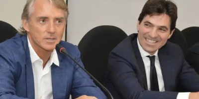 L’ex ct della Nazionale Robero Mancini bacia la pantofola della Meloni